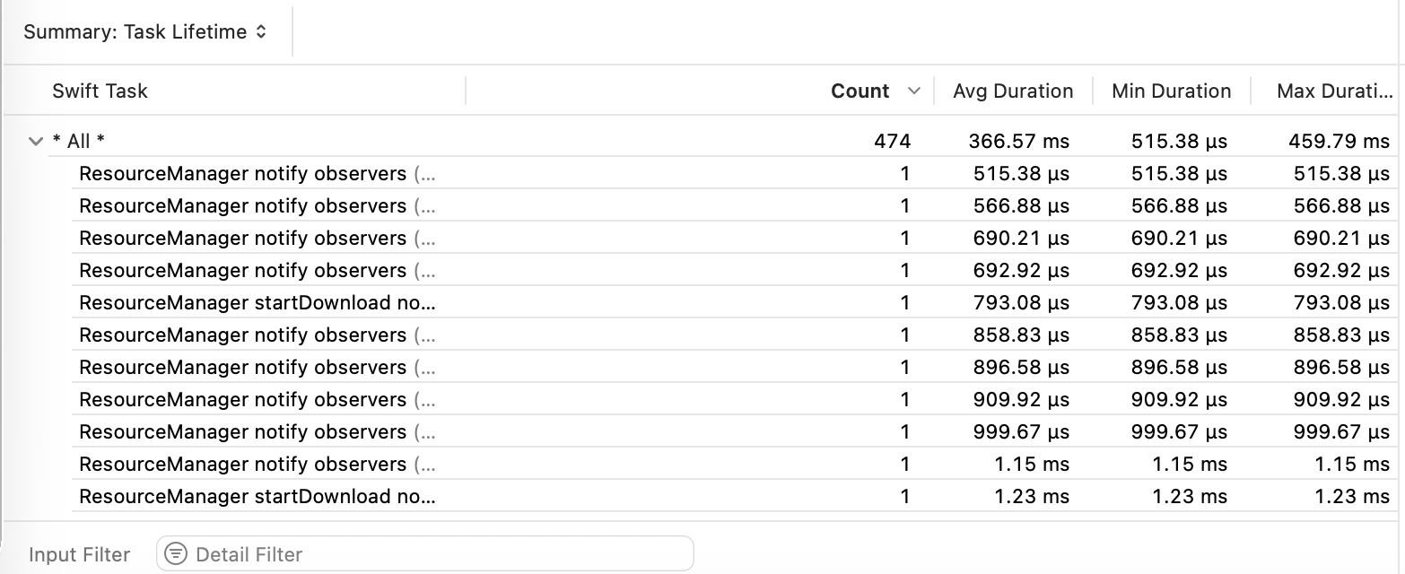 I am confused why each of the task is showing as a separate task in the task lifetime summary. Is there a way to queue the trace in Instruments into the fact that these are indeed the same task?