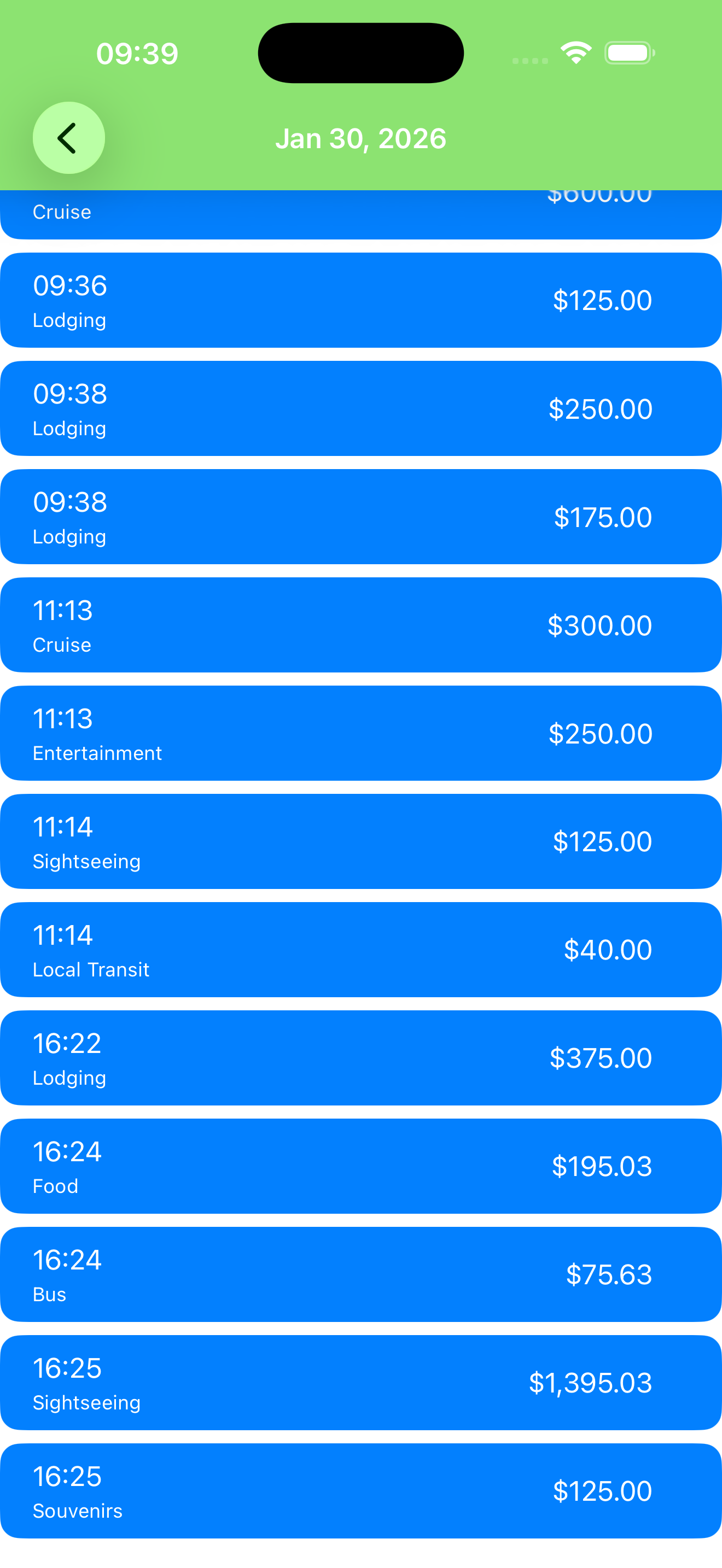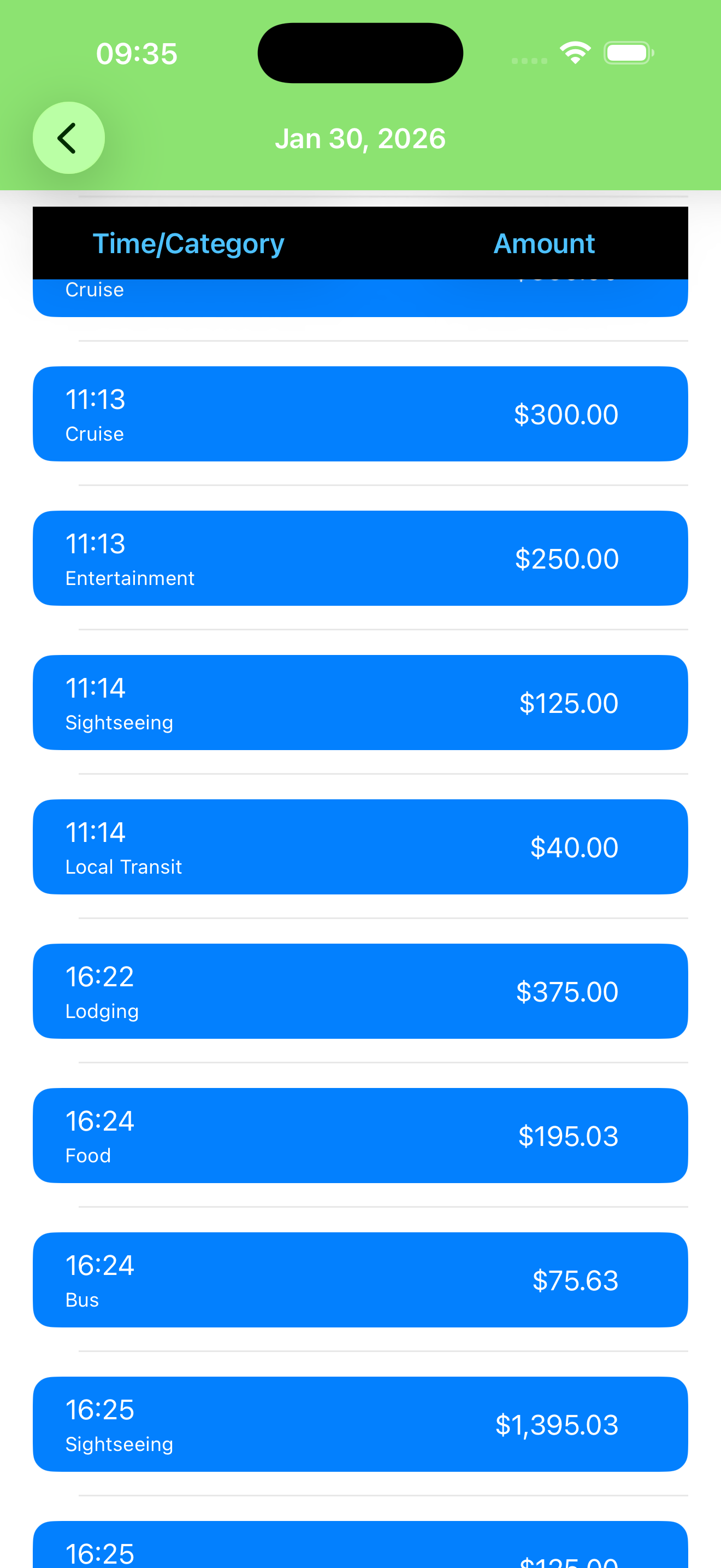 The first image with time 9:35 shows a list of transactions sorted by date using List{}. The column headers are displaying in DARK mode with a black stripe, and header items have switched from black to white.