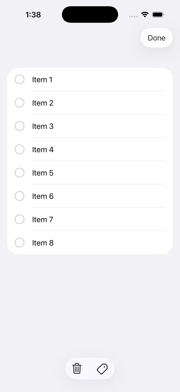 I'm trying to replicate edit/select mode of iOS 26 photos app. When user clicks Select button, bottom tab bar is replaced by the toolbar buttons. When I press Done button, a white opaque bar appears at the bottom behind the tabbar. It looks pretty straightforward to implement but I'm banging my head here now. Any help will be appreciated.
