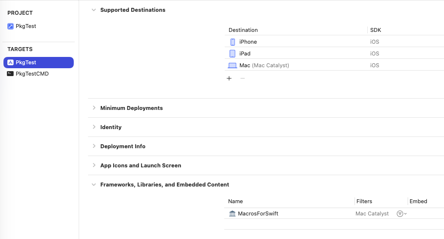- Changing PkgTestCMD target to be on Catalyst/iOS instead of macOS. This works but I'm not sure how to properly run CMD tool with iOS SDK (if this correct at all): I need the main thread to be 'unblocked' and be active while background tasks exist.