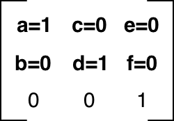 To reset the transformation matrix to the identity matrix (no transformation), call ctx.setTransform(1, 0, 0, 1, 0, 0). The identity matrix and the parameter positions are illustrated in Figure 8-4.
