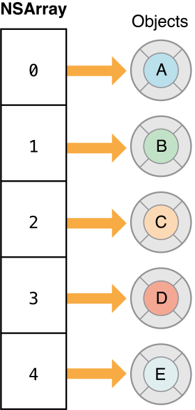 An NSArray object manages an immutable array—that is, after you have created the array, you cannot add, remove, or replace objects. You can, however, modify individual elements themselves (if they support modification). The mutability of the collection does not affect the mutability of the objects inside the collection. You should use an immutable array if the array rarely changes, or changes wholesale.
