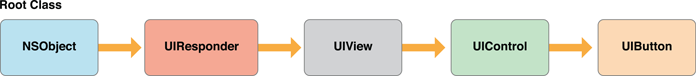 The UIButton class itself is defined to inherit from UIControl, which describes basic behavior common to all user interface controls on iOS. The UIControl class in turn inherits from UIView, giving it functionality common to objects that are displayed on screen. UIView inherits from UIResponder, allowing it to respond to user input such as taps, gestures or shakes. Finally, at the root of the tree, UIResponder inherits from NSObject, as shown in Figure 1-3.
