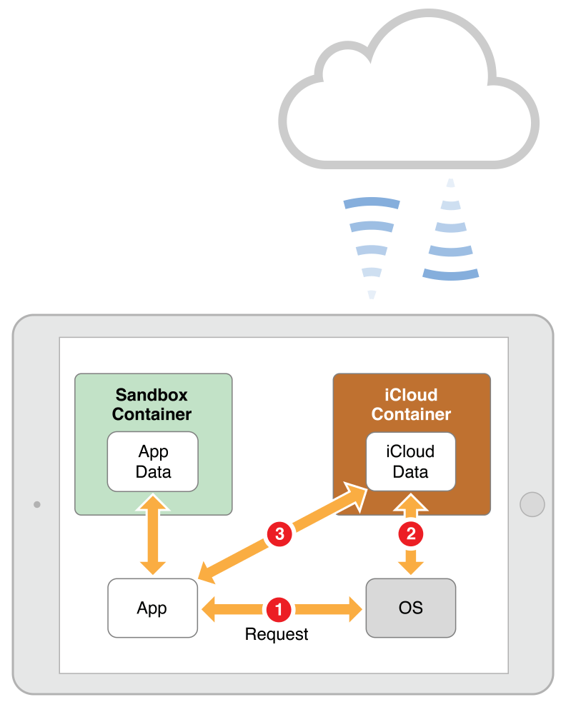 When you write files and directories to iCloud document storage, the system transfers those items automatically to iCloud and to the user’s other devices. Using iCloud document storage is similar to using the local file system, except for the following requirements: