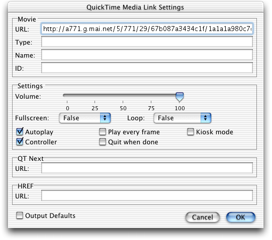 No such substitution is required for (or inside) .pls files, but you must still use the EMBED’s SRC parameter to direct the browser to a QuickTime file, and the QTSRC parameter to pass the actual file to QuickTime. The HTML is essentially identical to the example just shown, substituting