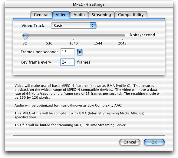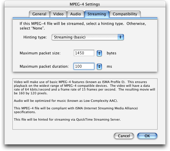 • A new group of MPEG-4 settings dialogs in QuickTime Player that enable QuickTime Pro users who work with MP4 files to make a number of adjustments in video and audio tracks, streaming and compatibility. Discussed in the section Working with MPEG-4 Files.
