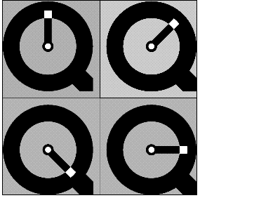 Figure 4-7 compares compressor performance for the simple graphic image shown in Figure 4-3. The Graphics Compressor is the only reasonable choice. Not only does it produce the best compression, but also it stores the image without losing any of the image’s detail, since there are fewer than 256 colors in the source image. The Photo and Compact Video Compressors get some compression, but do not store the image as accurately as the Graphics Compressor. The Video Compressor stores the image even less accurately and does not compress the image well at all. The Animation Compressor also does not store the image with complete accuracy at 16 or even 24 bits per pixel, and the resulting files are much larger than the uncompressed PICT. Although the 8-bit Animation Compressor does store the image accurately, it only achieves half as much compression as the Graphics Compressor and its file is also larger than the original PICT.